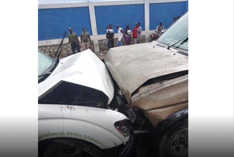Aux environs de 8hrs, un tap-tap assurant le parcours Saint-Marc/ Arcahaie est entré en collision avec un autre véhicule privé, ce qui a causé deux bléssés.