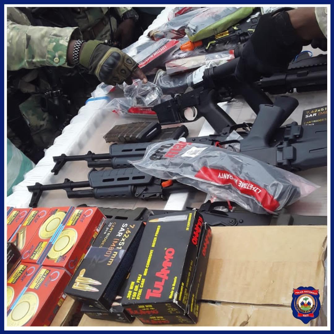 Pandan ensekirite ap vale teren tout kote nan peyi a nan mwens pase 2 semenn, Lapolis rive mete men sou plizyè kantite zam ak minisyon nan vil Pòdpè ak Pòtoprens.