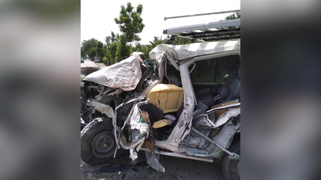 Kadinal Chibly Langlois konnen yon tèrib aksidan machin li pandan li t ap franchi sou wout Leyogann, pli patikilyeman nan zonn Akil, nan dat 8 jen 2022, nan lè anviwon midi.