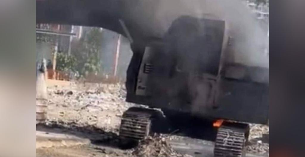 Sou lòtbò a bandi yo te pral mete dife sou yon traktè ki te gen pwoblèm pandan li t ap fè chimen pou li antre epi penmèt lapolis jwenn plis espas pou li atake nèg sa yo k ap kreye ensekirite ak panik anndan peyi an.