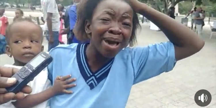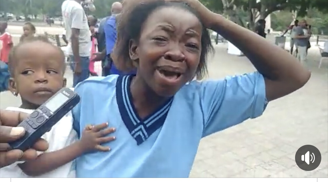 “On a brûlé ma maison, je ne sais où je vais m’abriter moi et ma famille”, a déclaré une jeune fille, son bébé dans ses bras sur une place dans l’air du Champs de Mars.