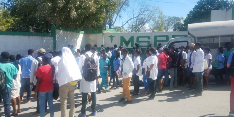 Les manifestants ont assiégé les locaux du MSPP sis à Maïs Gâté en début de matinée ce lundi. La Protestation vise au MSPP de revenir sur sa décision de ne pas payer l’internat aux médecins des universités privées.
