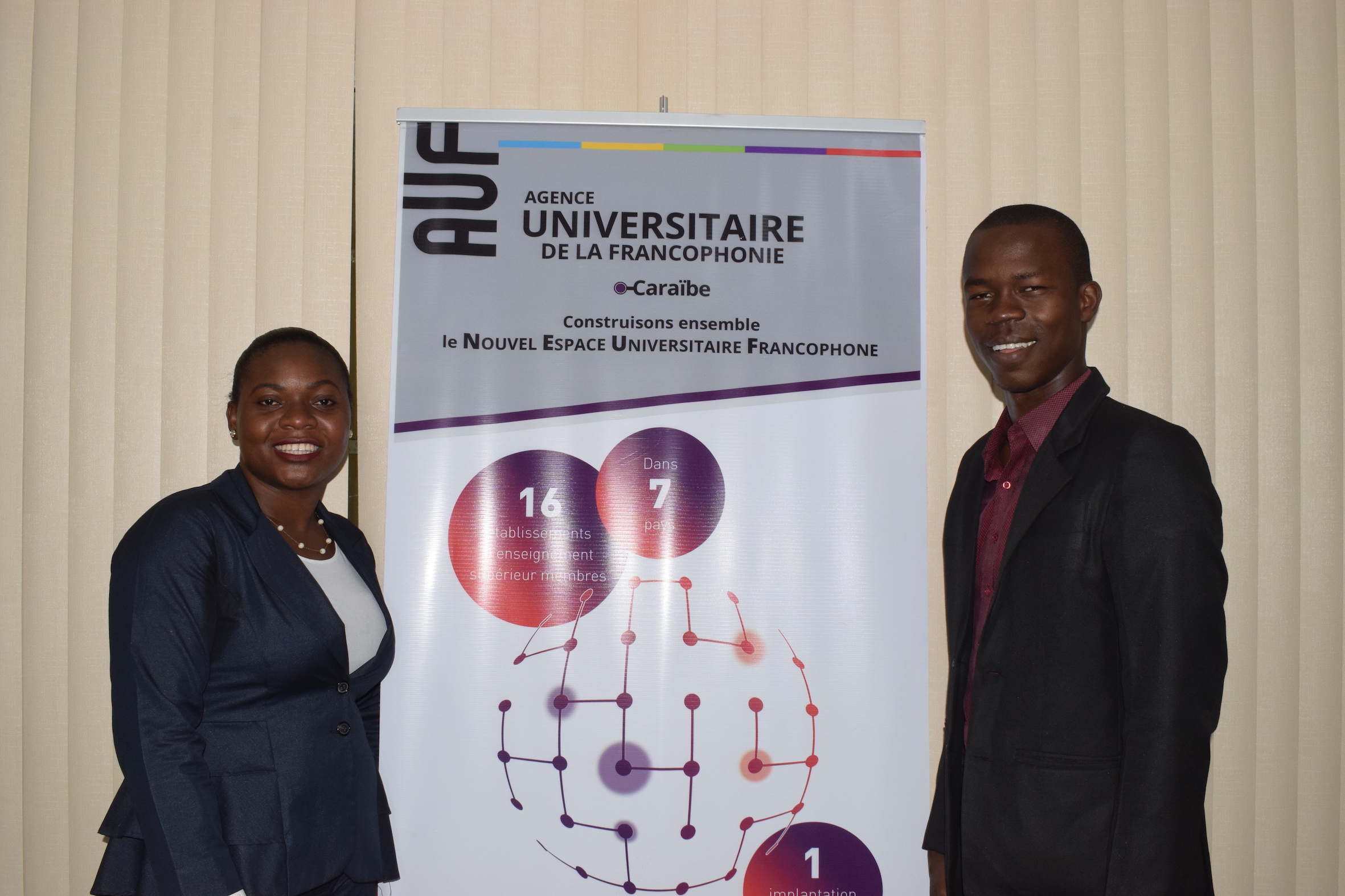 Esther GRÉGOIRE et Jerry Sylvain, deux étudiants de la faculté de droit et des sciences économiques (FDSE) de l’UEH, prennent part au concours d’éloquence international organisé par l’université Paris 1 Panthéon Sorbonne. Ce concours mettra en valeur les techniques de l’art oratoire chez les participants issus de différentes universités affiliées à l’Agence Universitaire de la Francophonie (AUF) dont deux étudiants haïtiens.
