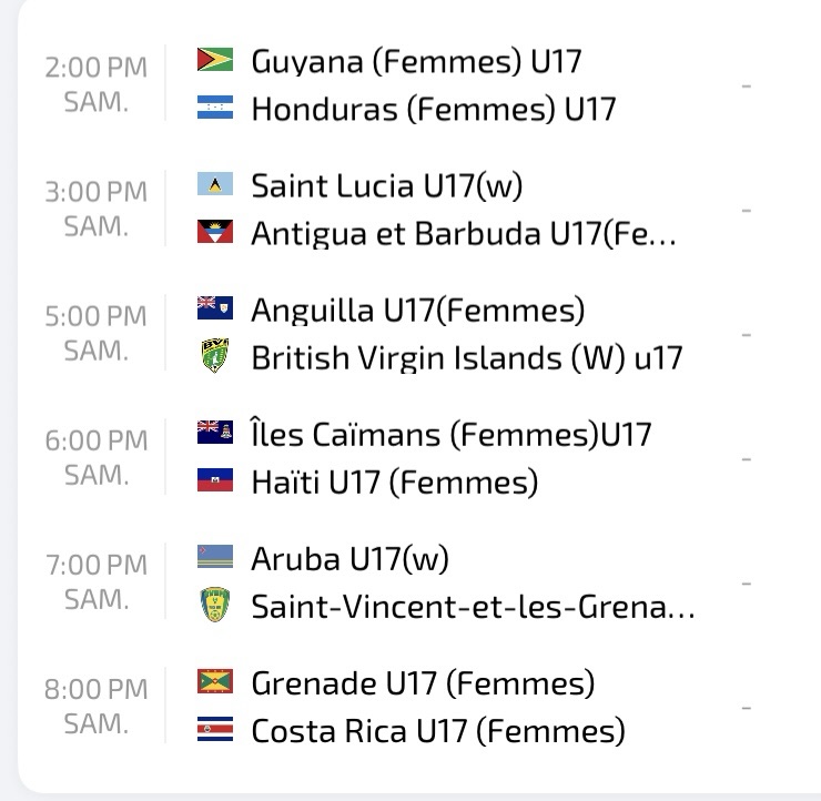 Dans le duel du groupe A, les joueuses des Îles Vierges des États-Unis ont décroché une victoire précieuse face à la Dominique (2-0). Cette victoire vient après deux défaites initiales dans le tournoi. La République dominicaine, de sa part, a dominé largement une équipe de Bélize qui avait pourtant repris confiance après sa victoire contre la Dominique. Ainsi, les Dominicaines les ont battus avec 5 buts à zéro. Actuellement, elles sont en deuxième position derrière le Nicaragua.