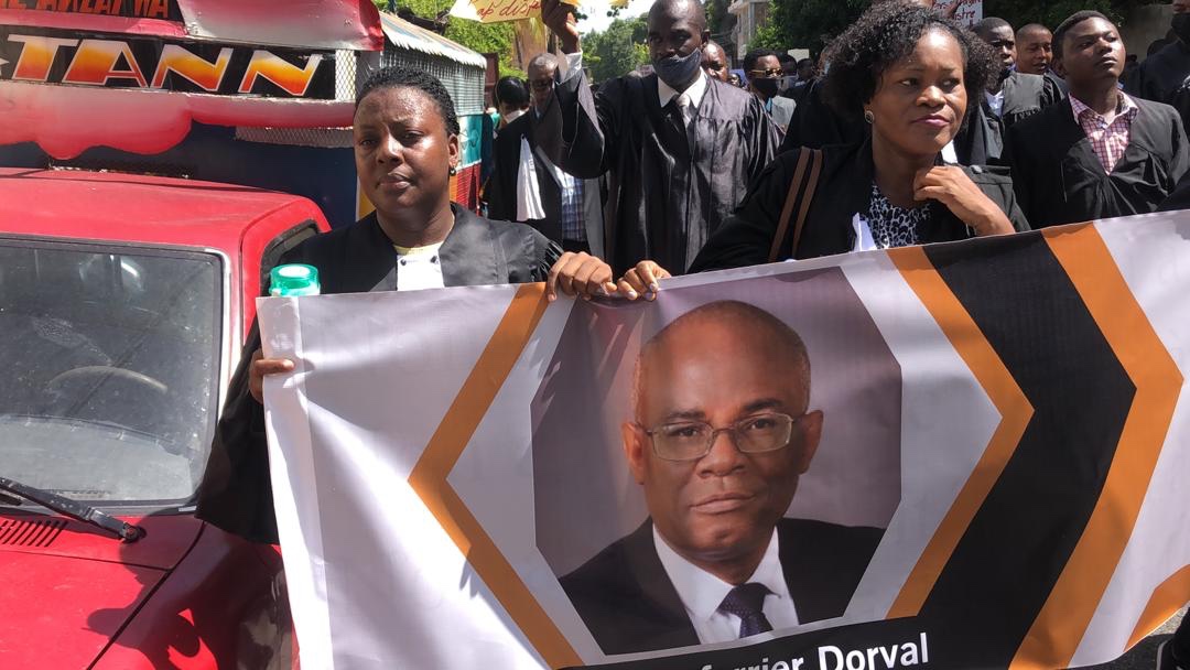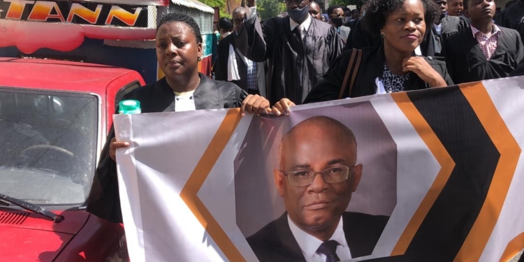 En vue de réclamer justice en faveur de Me Monferrier Dorval lâchement assassiné en sa résidence à Pèlerin 5 la soirée du vendredi 28 aout dernier, les avocats inscrits aux tableaux de l’ordre des 18 juridictions de la République, étudiants de l’Université d’État d’Haïti (UEH) et de la société civile ont investi le macadam, ce jeudi 3 septembre 2020.
