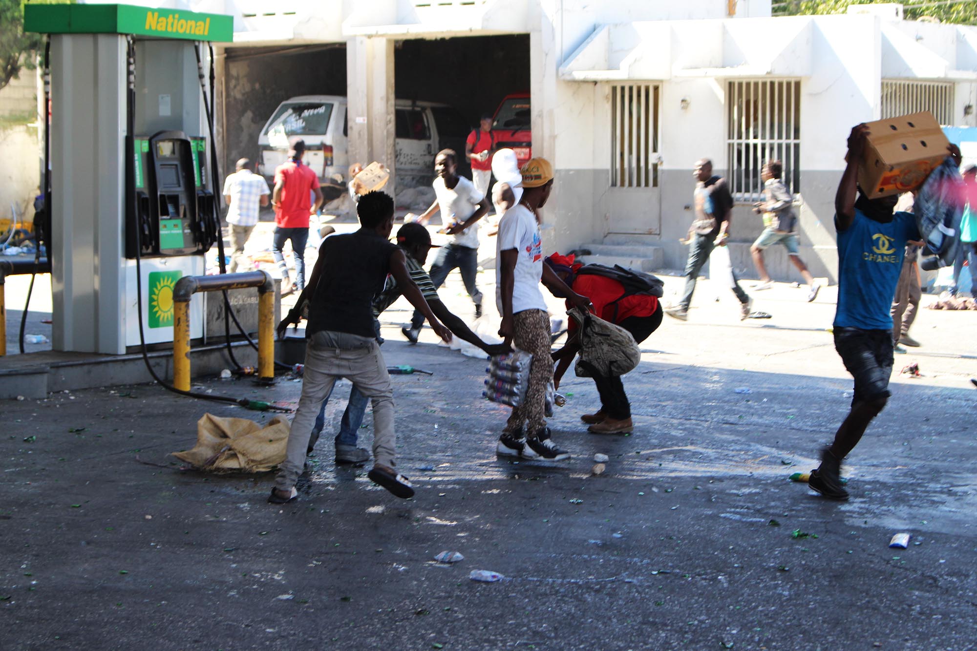 La station à essence Nationale à Delmas 52 aété sabotée à maintes reprises par les protestataires. Ils ont même essayé del’incendier à la fin. Le dépôt de cette compagnie a été pillé, les jeunes onttout emporté: boissons gazeuses, vêtements, chaussures, nourritures. Unepatrouille de police qui se trouvait sur lieux était dépassée par la situationet ne pouvait stopper le dechoukay.