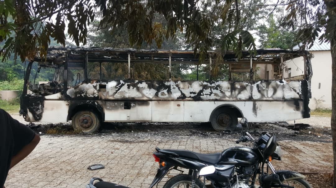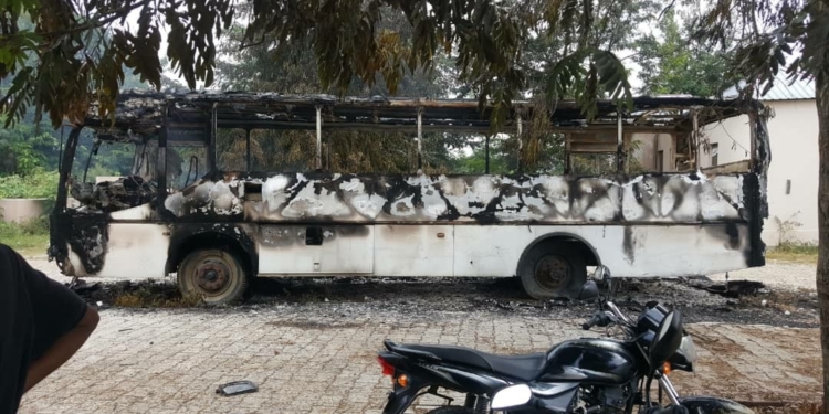En effet, des individus non identifiés ont mis le feu dans un autobus de la compagnie Dignité gare sur la cour du complexe administratif logeant plusieurs bureaux publics de cette ville.