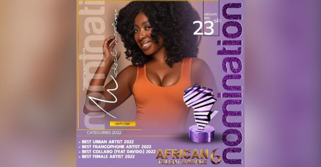 La chanteuse haïtienne Mickael Marabou est nominée dans 4 catégories aux African Talent Awards. C’est sur sa page Facebook que l’artiste a annoncé la nouvelle à tout Haïti ce lundi 14 novembre.