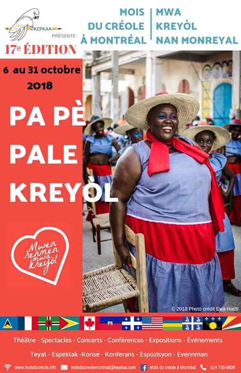 Au-delà de la langue, la culture et les arts créoles sont en valeur : pièces de théâtre, conférences, spectacles de musique et d’humour, expositions de peintures et de livres, foires culinaires, soirées de poésie, de réflexions. Ce samedi 6 octobre, de 18h00 à 22h00 aura lieu l’ouverture de la 17ème édition du « Mois du créole à Montréal » et du 9e Rassemblement pour l’art haïtien.