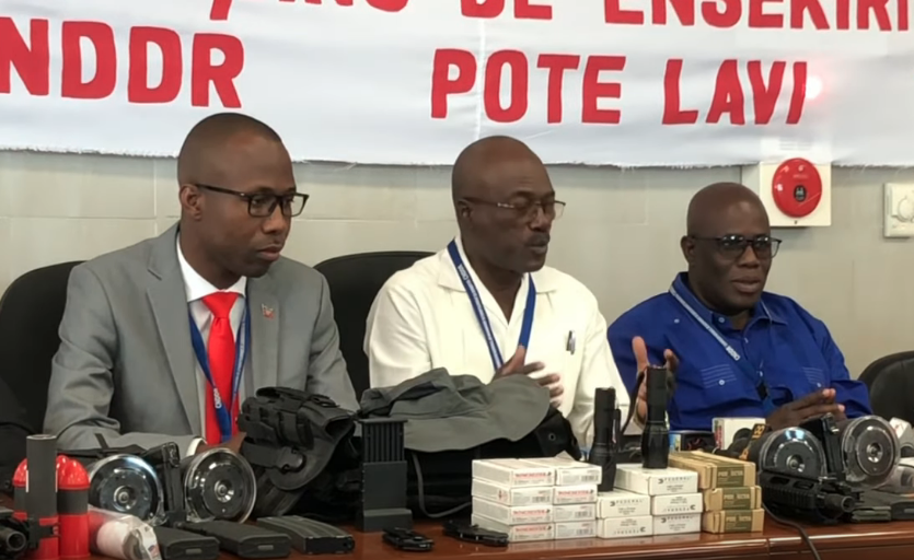 Dans une conférence de presse donnée ce lundi, les membres de la Commission Nationale de démantèlement, de désarmement et de réinsertion (CNDDR) donne une semaine aux personnes qui ont acheté des armes et des munitions illégales entre les mains du présumé trafiquant d’armes à feu et de minutions, Arby Frantz Larco, pour les restituer à la commission.