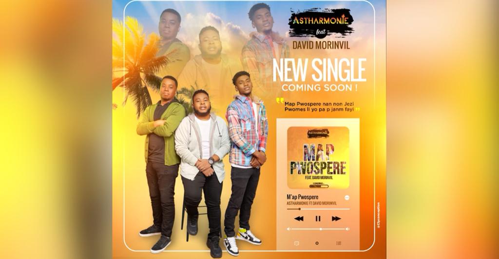 Le groupe évangélique haïtien Astharmonie annonce un nouveau projet pour ce mois de juillet. Il s’agit d’un morceau titré “M ap pwospere” qui devrait sortir vendredi prochain. On y retrouvera les 3 chanteurs du groupe ainsi que David Morinvil comme artiste invité.