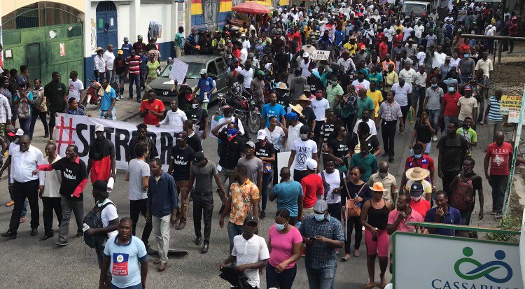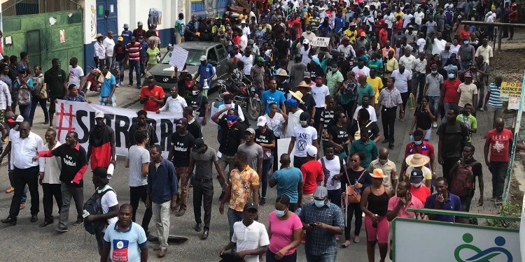 “Nous sommes dans les rues pour dénoncer parce que nous ne pouvons pas vivre en paix. Nous vivons une insécurité programmée, un terrorisme d’Etat, un Kidnapping d’Etat”, lance un jeune militant dans la foule. “ C’est le résultat de la mauvaise gouvernance de Jovenel Moïse, c’est lui qui distribue des armes dans les ghettos”, a-t-il poursuivi.