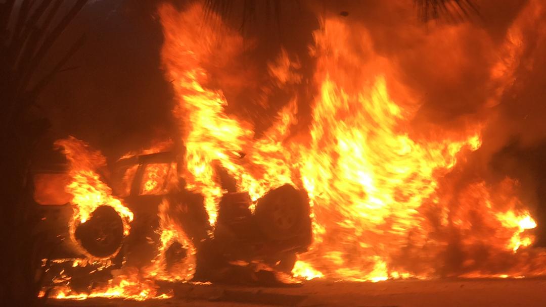 Des voitures garées au cabinet de l’avocat Samuel Madistin ont été incendiées, ce mercredi 19 février 2020, à l’ occasion des protestations des policiers pro-syndicats.