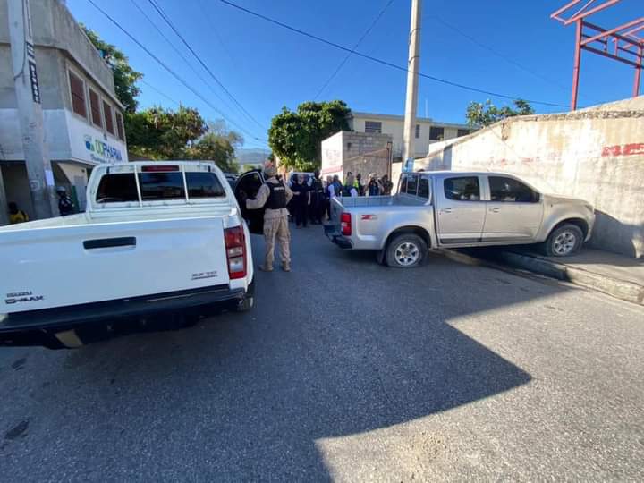 Des policiers de l’Unité Départementale de Maintien d’Ordre (UDMO) et le SWATT ont poursuivi le véhicule suspect de couleur grise qui avait pour destination Montagne Noire dans la commune de Pétion-Ville. Plusieurs individus se trouvaient à bord du pick-up.