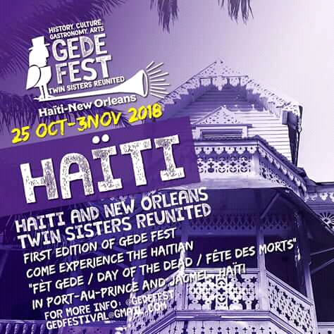 Du 25 octobre au 03 novembre 2018, la toute première édition du Gede fest établira ses quartiers sur plusieurs sites de la capitale. « Un événement qui a pour but de réunifier la Nouvelle-Orléans, la plus grande ville de l’État de Louisiane aux États-Unis d’Amérique et Haïti qui sont liés par leur passé historique et leur richesse culturelle.» précise Pierre Chauvet de l’agence Citadelle, responsable de logistique du festival.